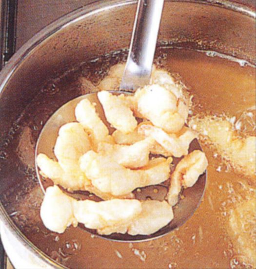 Cut strips from skinned fish fillets, working across the grain of the flesh: this helps the goujons retain their shape. The oil will rise in the pan, so fill to the recommended level - a deep pan should be filled to one-third of its capacity.