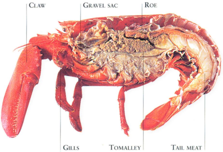 The lobster’s shell accounts for two-thirds of its weight, but very little of the rest is inedible. Blue-black when raw, the shell turns scarlet when cooked.