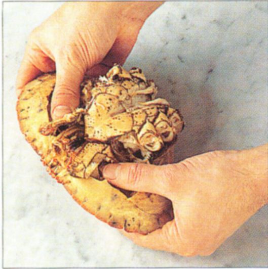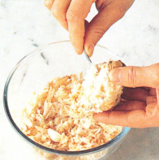 Although size and shape vary from one species to another, the essential parts of the body need a similar approach. The larger the crab the easier it is to remove the meat. A variety of utensils are available to extract the meat. For the legs, snip open the shell and remove the meat with a pick. Use a spoon to scoop out the yellowish-brown meat from the shell. Opt for a skewer or larding needle to poke out the white fibres from the central body. To dress a crab, see box.