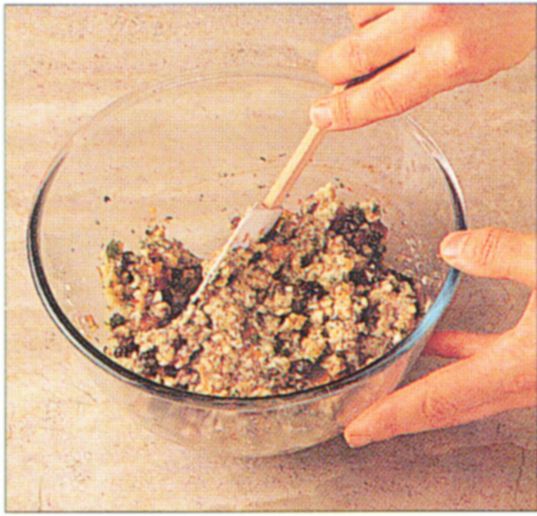 For a tasty meaty stuffing, mix sausagemeat, chopped onion, nuts, parsley, raisins, apricots and breadcrumbs. Bind with egg and season.
