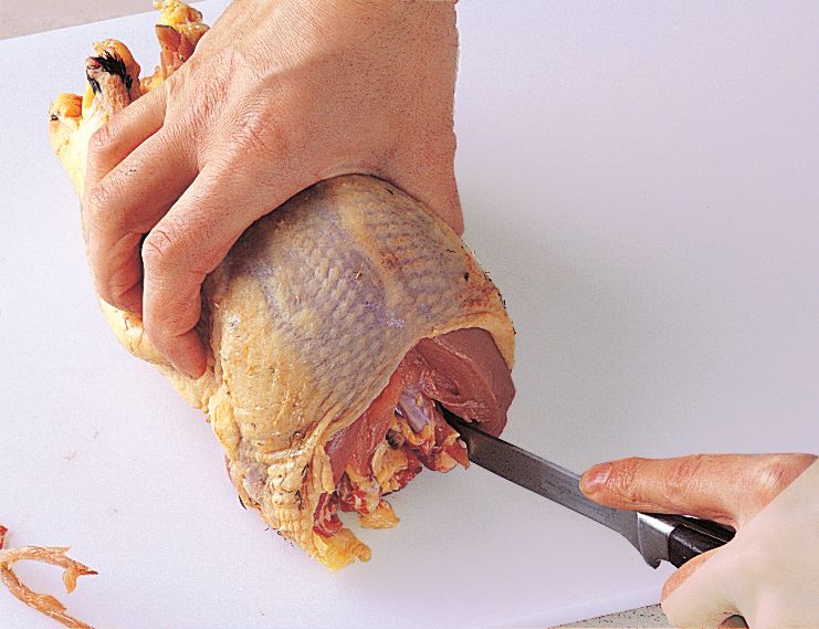Remove the wishbone before roasting so that the breast of the bird will be easy to carve.