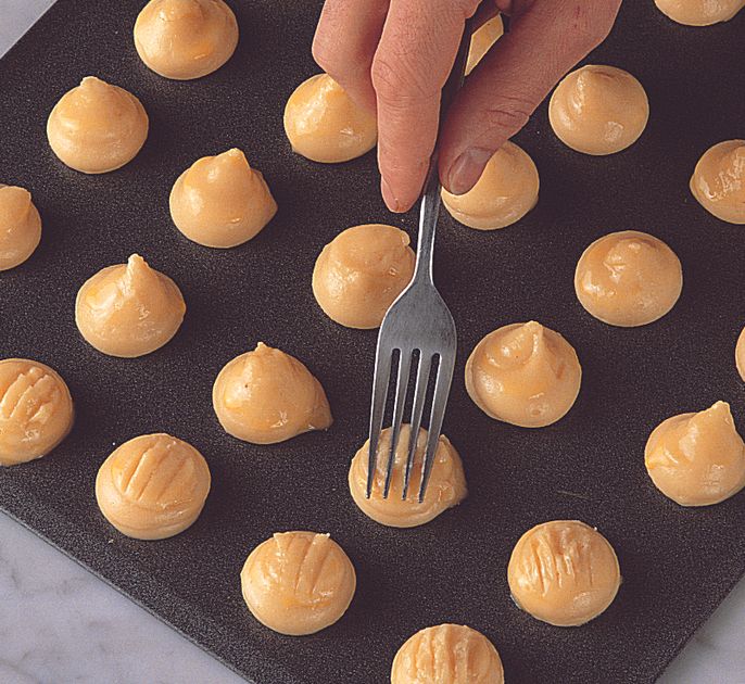 3. Slightly flatten balls with a fork dipped in egg wash to form rounded top.
