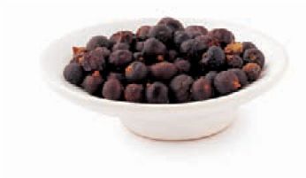 These hard berries are blue to purple in colour when ripened, and are used to flavour gin, game, pork and pâtés. Juniper is popular in German dishes such as sauerkraut and preserves. The flavour is slightly pine scented. Crush the berries lightly before use.