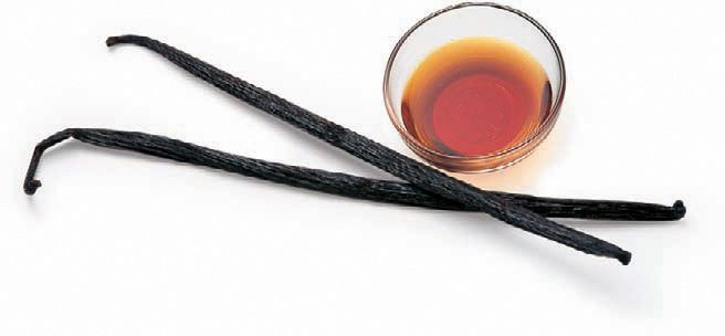 True vanilla comes from the pod of a climbing orchid vine. The beans are picked when green, then left to sweat and dry in the sun, causing them to shrivel, turn deep brown and acquire a light coating of white vanillin crystals. True vanilla is expensive, partly because of the labour-intensive methods of obtaining it and partly because the flowers are hand-pollinated on the one day of the year that they open. Good-quality vanilla beans have a warm, caramel vanilla aroma and flavour, and should be soft, not hard and dry. Bury a bean in a jar of sugar and let the flavours infuse the sugar, or infuse the whole bean in hot milk and use for custards and ice cream. For extra flavour, use the tip of a knife to slice down the bean to allow some of the tiny, potently flavoured seeds to escape. Vanilla is also distilled into pure vanilla extract (or essence). Synthetic or imitation vanilla flavouring is also available and this must be labelled as such. It is cheaper than pure vanilla extract and the flavour is inferior.