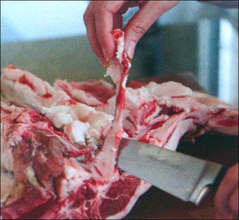 Notice how the saddle of lamb has two loin muscles and flaps on each side. If this were a steer, these flaps would be where the flank steaks are found.