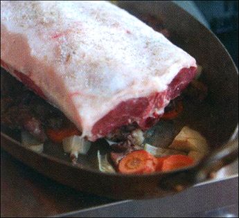 Trim off excess fat from the top of the saddle. Leave a thin layer of fat covering the meat.