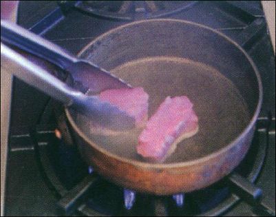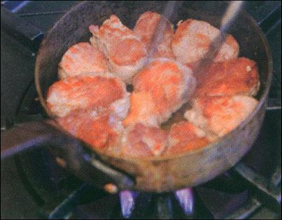 When you have added all the noisettes, keep the pan over the highest heat until well browned. Turn the noisettes two or three at a time and wait for 30 seconds before turning more.