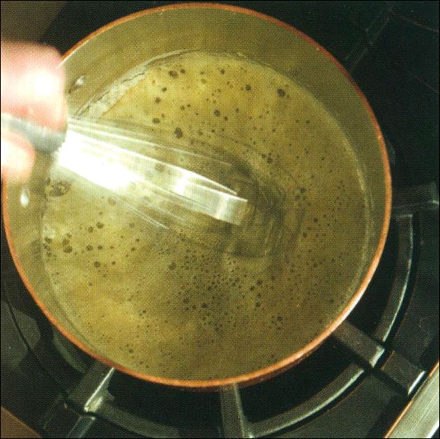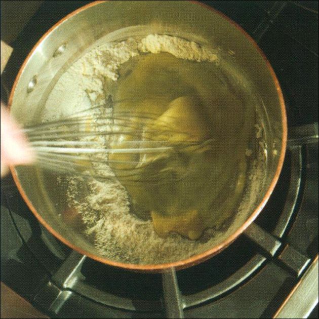 - Stir until the roux smells toasty. To make a brown roux, continue to cook the mixture until caramel colored with a nutty aroma.