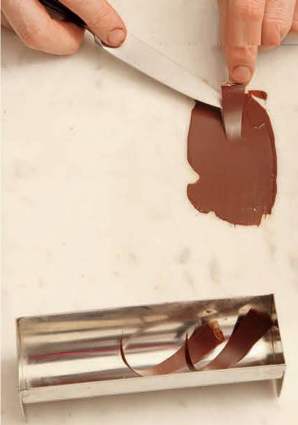 1. Clean and polish a plastic sphere mould (see Directory). Using a ladle, fill the cavities up to the rim with tempered chocolate, scraping off any excess. Tap the sides of the mould with the scraper to remove the air bubbles.
