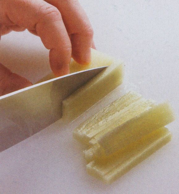 2. Stack the slices and slice into 3 mm lengths.
