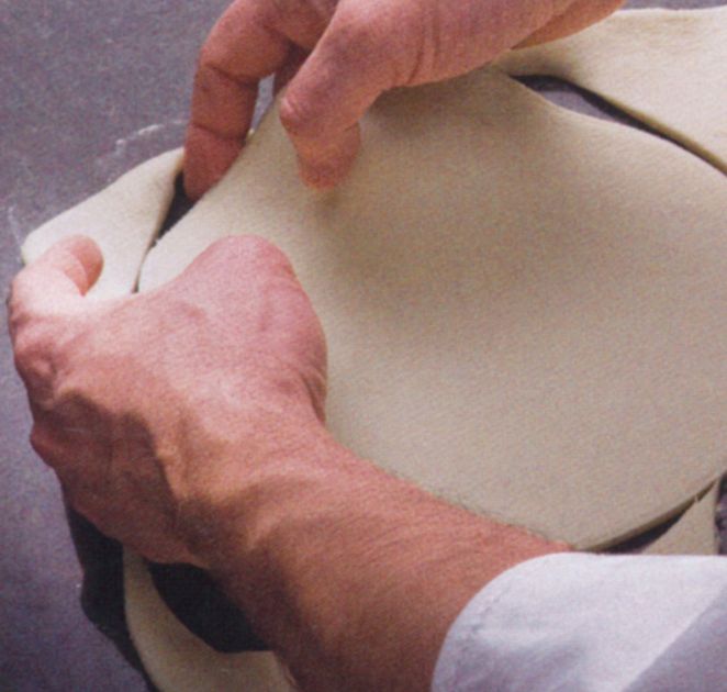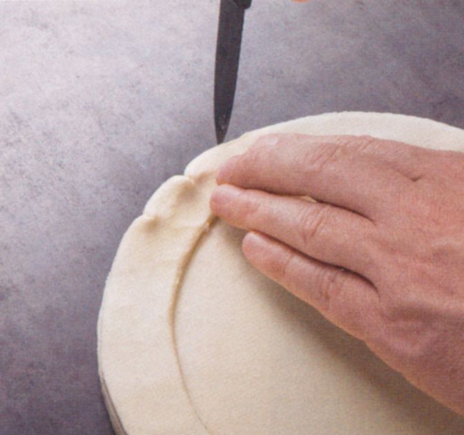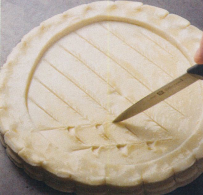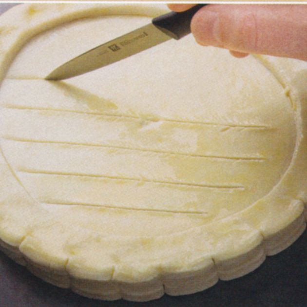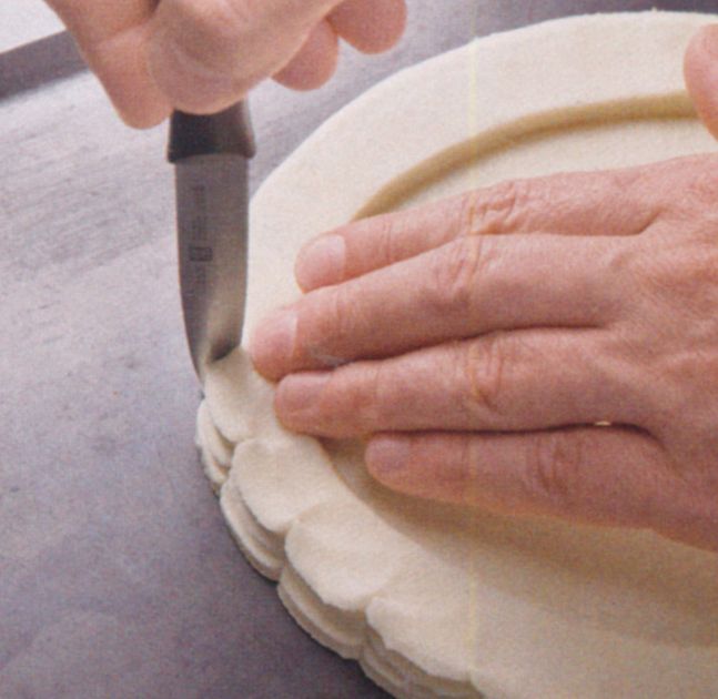 - Chiqueter the edges using the back of a small knife. Push the back edge of the knife at an angle into the dough.