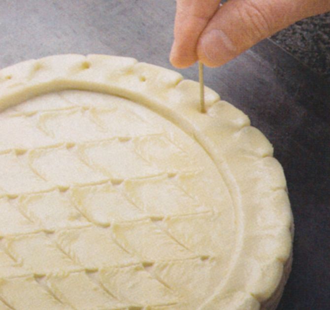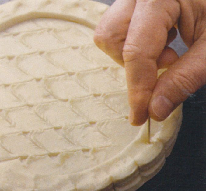 - Using a toothpick, pierce the dough at the inner points of the edge.