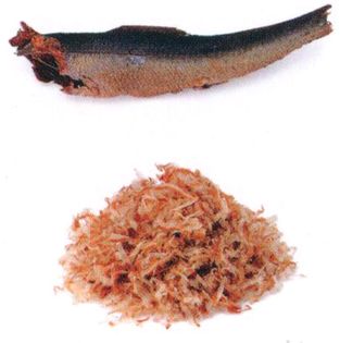 Fushi can also be created from one of a number of small types of fish, namely urume iwashi (round herring), ma iwashi (pilchard), and katakuchi iwashi (anchovy). The main domestic fishing grounds for all these species are off the southern Japanese island of Kyushu. Interestingly, although the raw ingredients may be the same, these fushi all have a different aroma from another key dashi ingredient, niboshi. Ma iwashi has a distinct aroma, but results in a dashi with a light and rounded aroma. Urume iwashi tends to have a lower fat content than the other two, and therefore has a purer taste, yet yields a characterful dashi. Finally, shavings from dried katakuchi iwashi produce a stock that has a yellowish tint and is light in flavour. Each of these three different types of fushi are most likely to be encountered in udon noodle restaurants west of the Kansai area of japan.