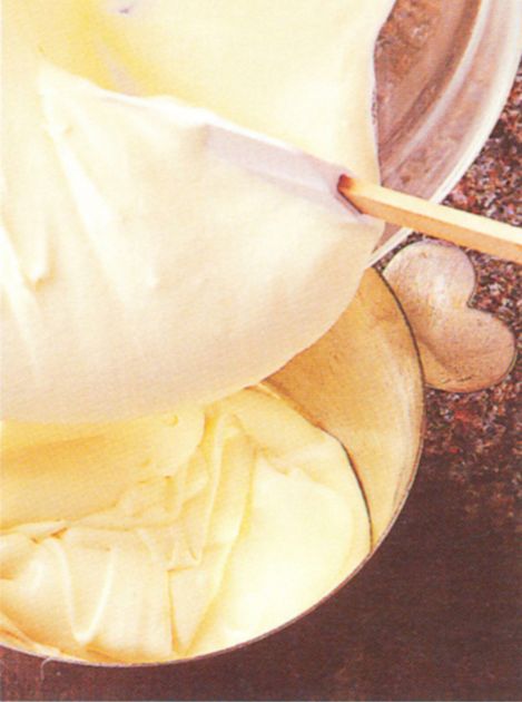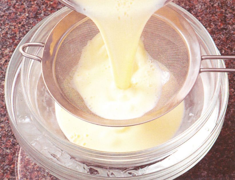 Pour the custard through a fine sieve into a bowl sitting in iced water.