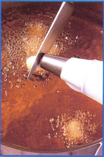 Place oil in a pan to a depth of 7.5 cm and heat to 190°C. Fill a piping bag fitted with a plain 1.5-cm nozzle with choux paste. Hold the bag over the hot oil and squeeze it to extrude a piece of dough, roughly 3 cm in length. Cut off the dough close to the nozzle, using a chef’s knife, so the dough falls directly into the oil. Deep-fry for 3-5 minutes until puffed and golden. Remove with a slotted spoon and drain on paper towels. Serve warm.