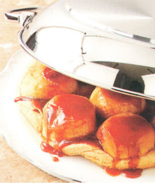 Place the apples in a 23 cm flameproof tin. Cover with Pâte Brisée and bake at 220°C for 20 minutes. Nudge the pastry rim to loosen it and invert on to a platter. Serve warm with crème fraîche.