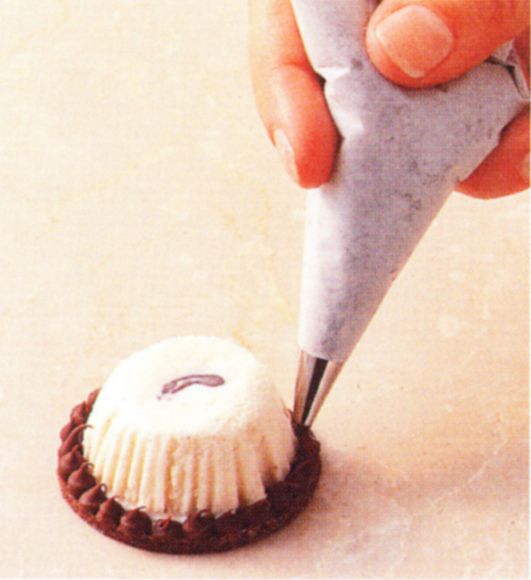 Macerate glacé cherries for several hours or overnight in kirsch or brandy, then drain before assembling these white chocolate mini bombes. Using a teaspoon, press a little white chocolate ice cream into the base of a petit four case. Top with a cherry, then cover completely with ice cream, pressing it around the side of the fruit. Repeat with the remaining cherries and freeze until firm. For a striking presentation, give these white chocolate bombes a contrasting dark chocolate base.