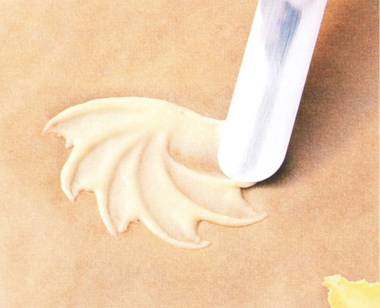 Place 1 tbsp stencil paste on a greased baking tray or parchment and, using a palette knife, spread it outwards from the centre in a ring of overlapping petals. Bake as above.