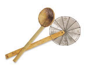A traditional Chinese strainer with a bamboo handle and wire/steel mesh always reminds me of street vendors who use it to quickly drain and shake off the excess water from boiled noodles. In my kitchen, I use the strainer for a couple of purposes: scooping and draining food after deep-frying and removing blanched foods from boiling water.