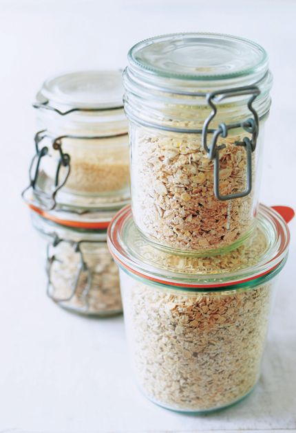 Above: Porridge (rolled) oats, barley flakes, rye flakes and sesame seeds should be stored in airtight containers.