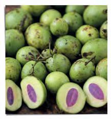 The sweet and sour gandaria can be found as part of fresh condiments, pickles, or lalapan, as well as the chilli sauce, or sambal. This yellow-to-orange fruit has bright purple cotyledons in its big seed. A native to North Sumatra, West Java and Peninsular Malaysia, gandaria flowers bloom from June to November, and fruit from March to June. The tree can soar as high as 27 meters, and take advantage of high humidity to grow on fertile soil usually not more than 300 meters above sea level. A mature tree produces up to 200 kilograms of fruit in one season, and offers much-needed shade during the dry season. The price is equal to the best mangoes, especially when off-season. With vegetative propagation planting, the first harvest can be obtained between five to six years after seedlings have been established.