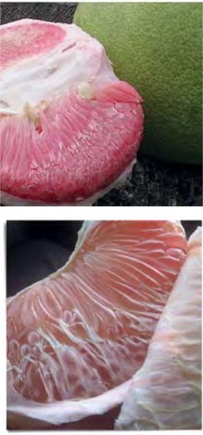 How ‘citrus grandis’ in Latin becomes jeruk bali in Indonesian still remains unknown. The only explanation we can offer here is that in 1884, a variety of pomelo, limau bali, was imported into Malaya from Indonesia by Sir Hugh Low to grow in Penang and Perak, Malaysia. Despite its unclear history, the pomelo may be easily found growing wild in Southeast Asia. It is grown as a cultivable crop, bearing a large bushy tree with an irregular crown growing to around 5 to 15 meters in height. The thorny tree has many branches and produces fruit all year round. The fruit is usually pale green to yellow when ripe, with sweet white (or, more rarely, pink or red) flesh and very thick spongy rind. It is the largest citrus fruit, 15-25 centimeters in diameter, and usually weighing 1-2 kilograms.