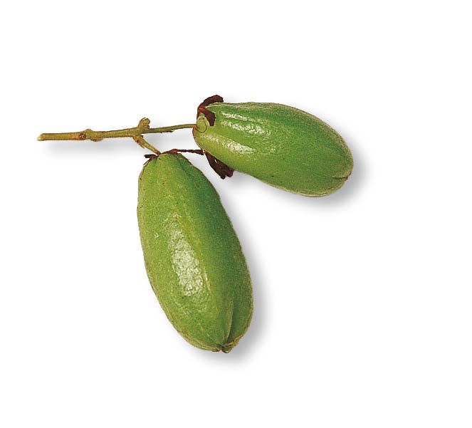 Carambola (belimbing wuluh) is a pale green acidic fruit about 2–3 in (5–8 cm) long. It grows in clusters and is related to the larger starfruit. Carambola is used whole or sliced to add a sour tang to soups, fish dishes and sambals. Substitute tamarind juice or sour grapefruit.