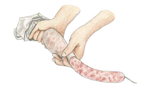 STEP 5 Squeeze all the meat into the casing, ensuring no air is trapped.