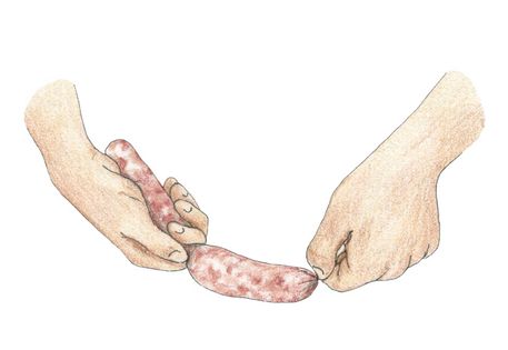 STEP 6 Portion sausages to the desired size by pinching one end and then twisting the sausage away from you to tighten.