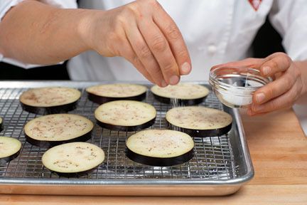 Disgorging draws out bitter juices from ingredients, usually watery vegetables such as eggplant or zucchini, and makes for a more delicate taste.