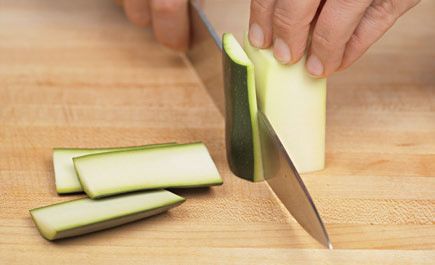 Stand sections on end and slice off the sides in 4 pieces, leaving an interior square of flesh containing the seeds; the width depends on the size of bastoncini desired.