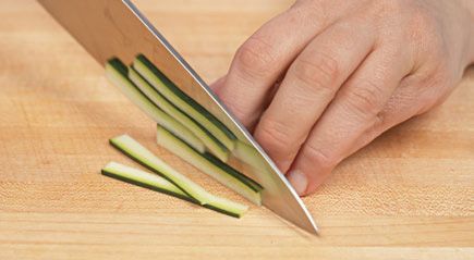 Cut the slices lengthwise into the desired size. From here, the bastoncini may be cut crosswise, into dice.