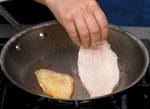 Place the scaloppine in the pan—do not crowd—and sauté on one side to brown. Turn and cook about 1 minute on the other side.