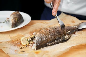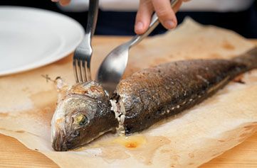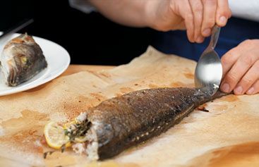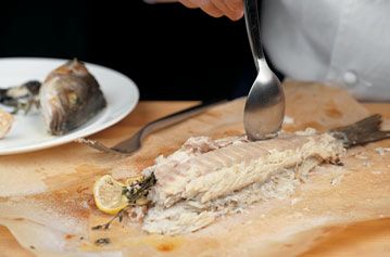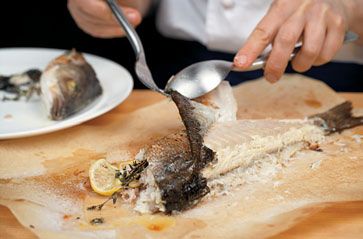 The technique illustrated here is used when serving Pesce Intero Arrosto and Pesce in Crosta di Sale.