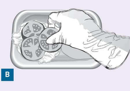 If making a simple sandwich, divide the filling between the 2 pieces of bread product. If using cheese, place it underneath the fillings (A).
