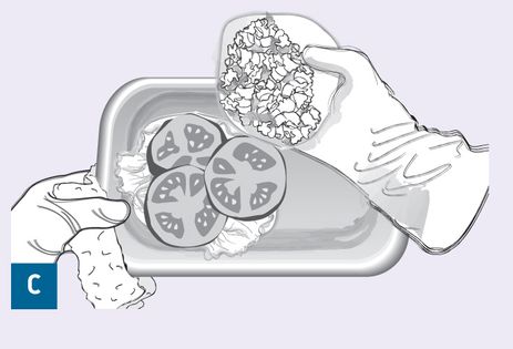 Unless making an open-face sandwich, close the sandwich (C) and press gently to firm it.