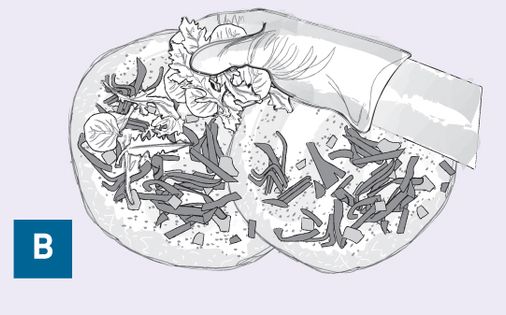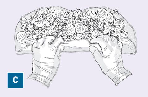 6. Roll the flatbreads to tightly enclose the filling and garnishes (C).