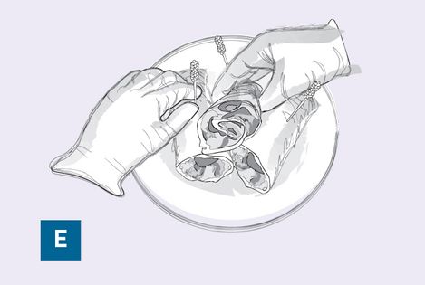 8. Cut on the diagonal into 2 or 3 sections (D).