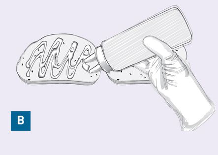 5. Apply the spread to the bread product (B).