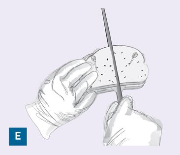9. Cut the sandwich as desired (E).