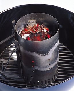 To set up a charcoal grill for direct grilling, first light the charcoal in a chimney starter.