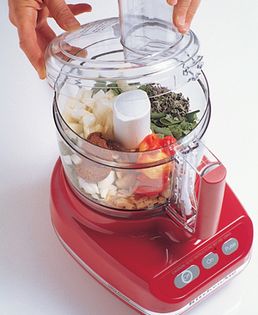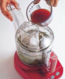 First, purée the solid ingredients for the jerk seasoning in a food processor.