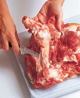 Cut first on one side of the bone, then on the other, using the tip of a sharp knife.