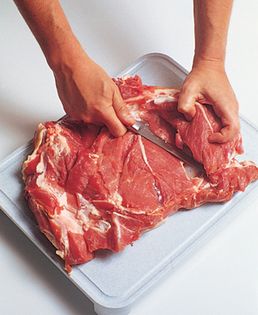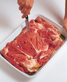 Cut through the thick part of the ham almost to the edge. Unfold it to obtain a broad, flat slab of meat.