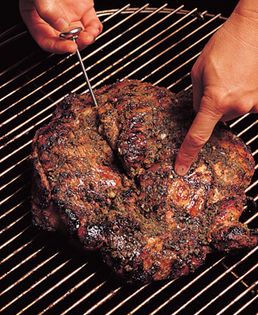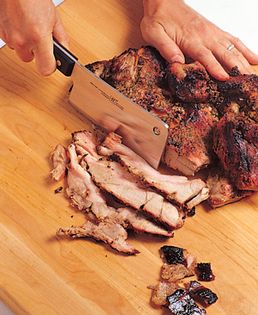 Jamaica’s contribution to the world of barbecue is jerk pork roasted over what may be the most incredibly fragrant fuel in the world, smoldering allspice wood. What makes jerk pork “jerk” is the seasoning, a fragrant, fiery paste of Scotch bonnet chiles, allspice berries, escallions (the Caribbean version of chives), fresh thyme, and perhaps a dozen other flavorings. Tradition calls for the meat to be “jooked,” that is poked with a pointed stick, to allow the seasoning to penetrate the meat. Jooking, in fact, may be how jerk got its name.