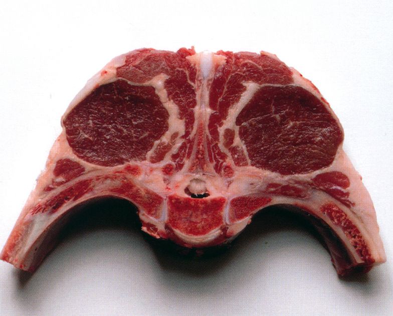 Taken from just below the scrag end, this cut has the appearance of a double chop. It is the perfect choice for a hotpot or a straightforward braise, as the meat around the neck is quite heavily marbled with fat and therefore stays moist and tender during slow-cooking.