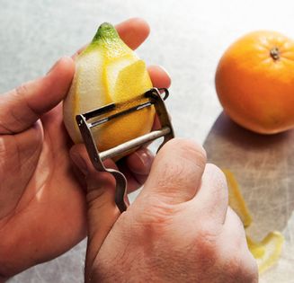 Thoroughly rinse 1 orange and 1 lemon with hot water. Dry thoroughly and peel thinly. Make sure to peel off only the colored zest, not the white!
