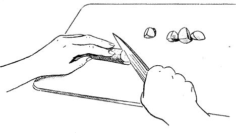 To make a rangiri cut, hold the knife diagonally to the vegetable, and, keeping the angle fixed, rotate the vegetable a quarter turn before making each cut. In this way, each piece will have a large surface area, which facilitates quicker, even cooking.