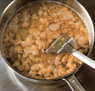Fat should be rendered (melted) over low heat and may take as long as three hours. The crisp “cracklings” left behind after straining can be seasoned and eaten. To render about 1 cup/250 ml fat: