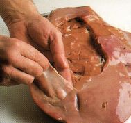 - If slicing liver, cut diagonally into slices. Remove any internal ducts from the slices.